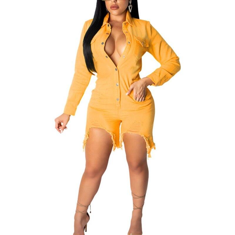 Jeans Denim Casual Mono Botones Frente Manga Larga Corto